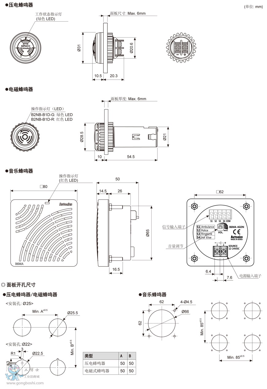 奧托尼克斯B2NB-B1系列 Ø22/25突出型電磁式蜂鳴器