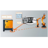 通過將 KUKA.PLC mxAutomation 與 KUKA.ConveyorTech 相連,機器人可以夾持運動中的工件。機器人的運動由應用軟件根據流水線和輸送帶的運動加以調整。通過使用 KUKA.VectorMove,可以對機器人進行矢量軟切換,以便于將部件從噴鑄機床和壓鑄機床中取出。